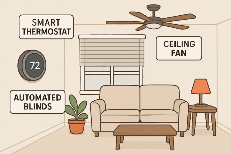 - Integrating smart window coverings and ceiling fans optimizes temperature regulation.